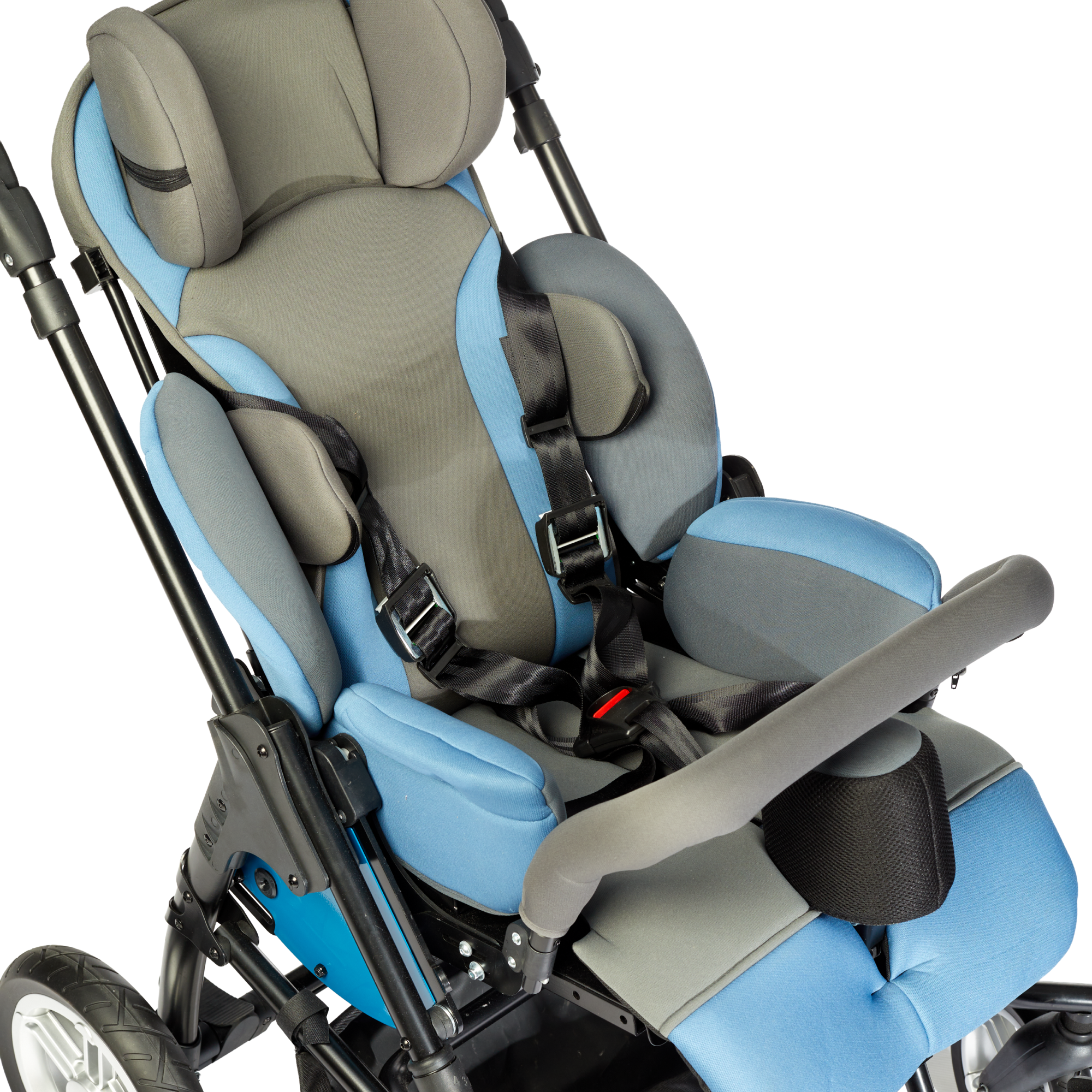 Крісло колісне в базовій комплектації має абдуктор, елементи бічної підтримки тулубу, пояс фіксації тулубу, фіксатори стегон та голови. Такі елементи системи позиціонування дозволяють зафіксувати дитину, що знижує ризик виникнення деформацій.
